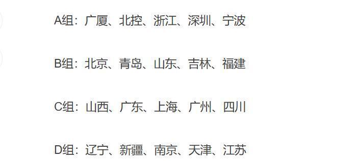 根据CBA联赛官方公布的情况,新赛季20支球队一共分为4个小组,其中A组有浙江广厦队、浙江稠州队、北控男篮、深圳队和宁波队;B组有北京首钢队、青岛队、山东高速男篮、吉林队、福建队,C组有山西队、广东队、上海队、广州龙狮队和四川队,D组有辽宁队、新疆队、南京同曦队、天津队和江苏队。新赛季常规赛一共有42轮,小组内的球队打3场,小组外的球队打2场,相对来说分配还是比较合理的。